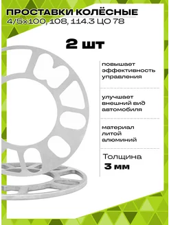 Проставки колесные автомобильные 3мм 4-5х100-108-114.3