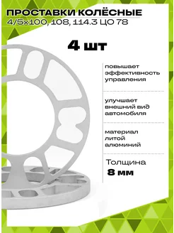 Проставки ступичные универсальные 8мм 4-5х100 108 114.3