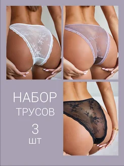 Трусы женские набор, танга, кружевные, бразильяно