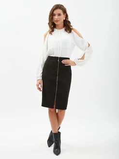 Юбка карандаш черная замшевая офисная на молнии