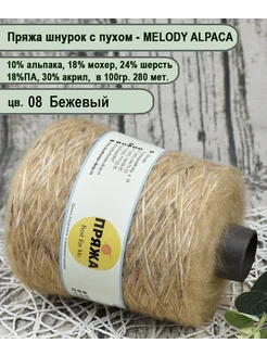Пряжа Melody ALPACA 10 альпака, 24 шерсть, 18 мохер, 280м