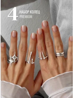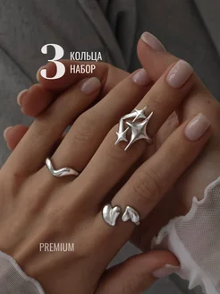 Набор колец с сердечками и звездами крупные регулируемые y2k