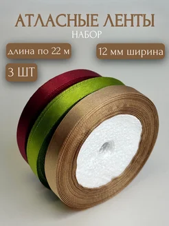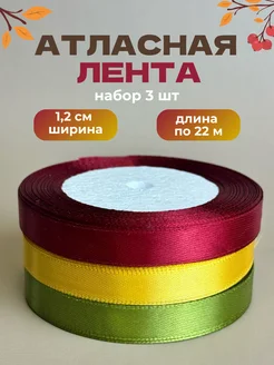 Лента атласная упаковочная для рукоделия 1,2 см 22 м 3 шт