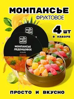 Фруктовые леденцы в сахаре монпансье, 4 штуки по 70 гр