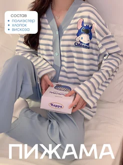 Пижама y2k с брюками и рубашкой с длинным рукавом Стич