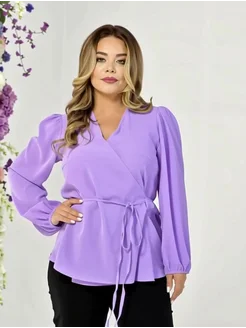 Блузка нарядная с поясом большого размера