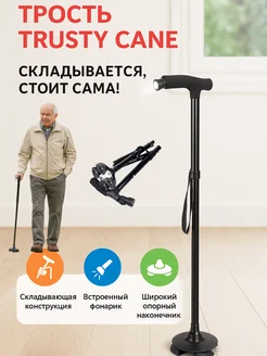 Трость опорная палка для ходьбы складная для пожилых с фонар…