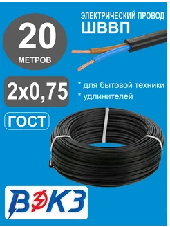 Провод электрический ШВВП ГОСТ черный 2х0,75 20 метров