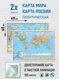 Двухсторонняя настенная карта мира на отвесах 114х76 см