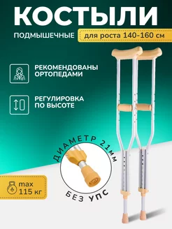 Костыли подмышечные без УПС взрослые, детские (10021,10022)