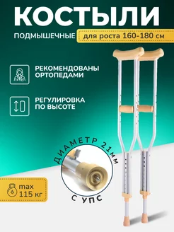 Костыли подмышечные взрослые алюминиевые 10022 с УПС