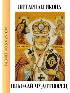 Икона из янтаря Николай Чудотворец 40.5х29 см