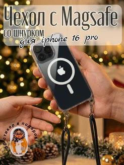 Прозрачный чехол Magsafe для iPhone 16 PRO со шнурком