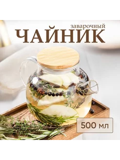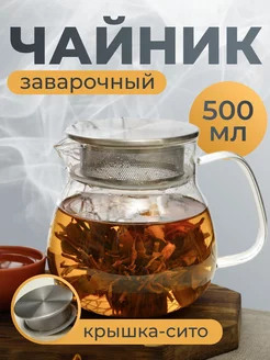 Чайник стеклянный заварочный крышка-сито, 500 мл
