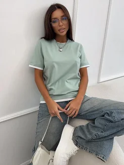 Многослойная футболка с контрастным кантом