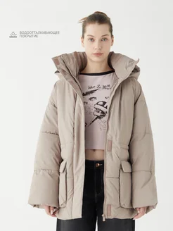 Куртка зимняя удлиненная оверсайз с капюшоном