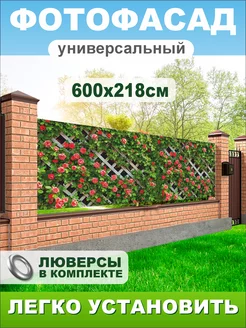 Фотофасад фотосетка баннер для забора красные розы 600х218см