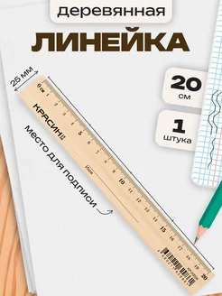 Линейка деревянная школьная, 20 см