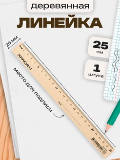Линейка деревянная школьная, 25 см