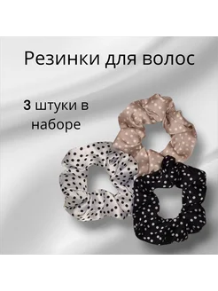 Резинки для волос в горошек шёлковые набор 3 штуки