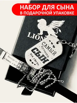 Подарочный набор для сына с гравировкой Браслет и брелок