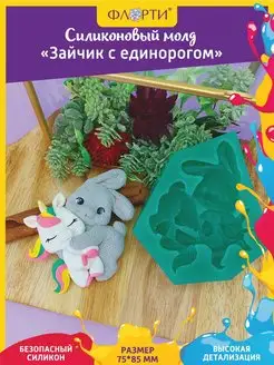 Молд силиконовый "Зайчик с единорогом" для кулинарии, глины