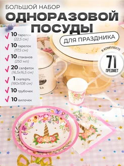 Набор одноразовой посуды для праздника с рисунком Единорог
