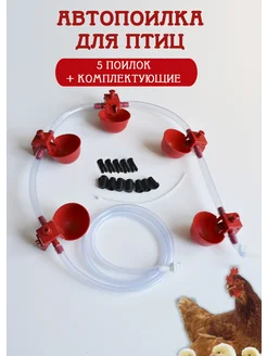 Поилка ниппельная пятерная для кур, перепела в сборе