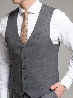 Жилет классический костюмный на пуговицах серый однотонный