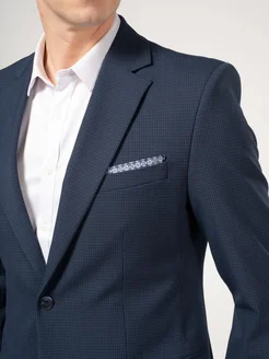 Костюм классический синий прямой в мелкую клеточку