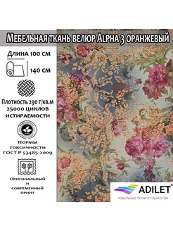 Ткань мебельная, Велюр Alpha 3 Оранжевый цветы 1 метр
