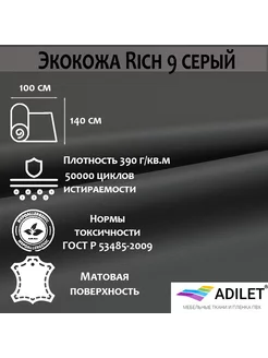Мебельная ткань Искусственная кожа, Rich 9 серый 1 метр