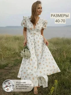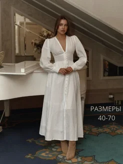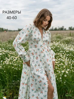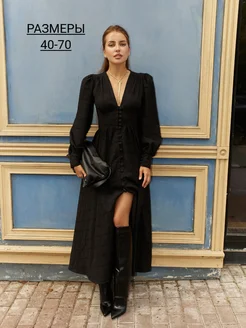 Платье длинное нарядное с разрезом бохо на пуговицах