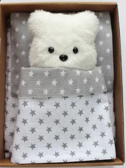 Авторская мягкая игрушка белый мишка в кроватке и пижаме
