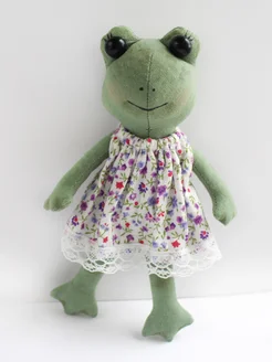 Авторская мягкая игрушка Лягушка в сиреневом наряде