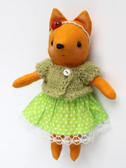 Авторская мягкая игрушка Лисичка в зеленом наряде