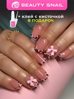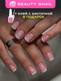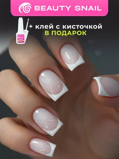 Накладные ногти с клеем и дизайном френч типсы длинные
