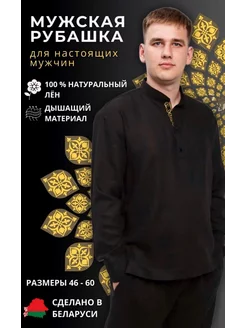 Рубашка льняная мужская с длинным рукавом и орнаментом