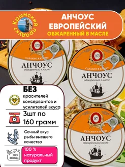 Анчоусы в масле обжаренные, в банке, рыбные консервы 160гХ3