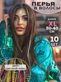 Перья в волосы длинные натуральные набор XL 30-40 см 10 шт