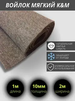 Войлок 10 мм, 2000 1000 мм (мягкий темный)