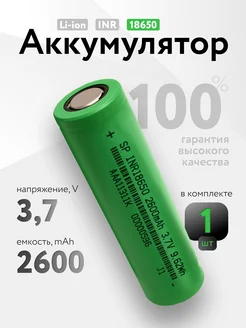 Аккумулятор 18650 3.7v, 2600 mAh 1 шт