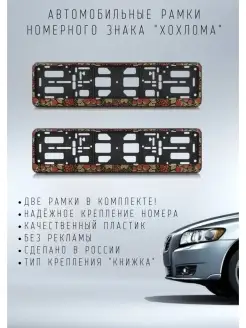 Рамки номерного знака, ХОХЛОМА 1, черные, 2 штуки