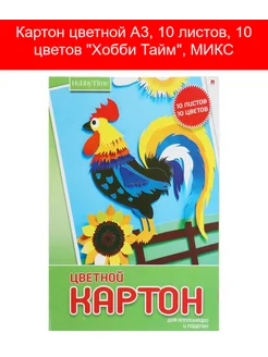 Картон цветной А3, 10 листов, 10 цветов "Хобби Тайм", МИКС