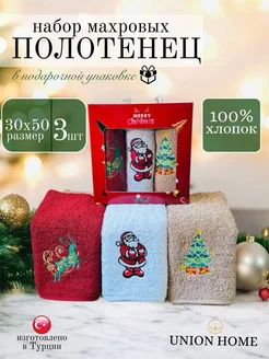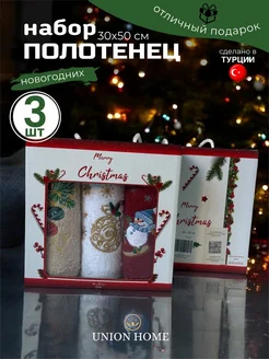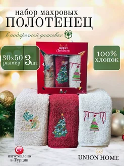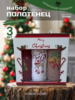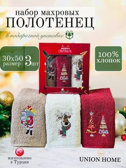 Набор Новогодних махровых полотенец (30x50 см) 3шт, Турция
