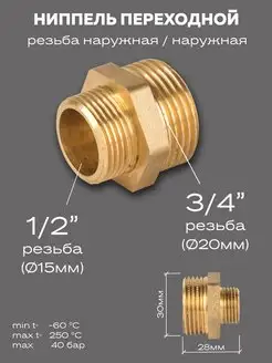 Ниппель переходной DN20х15 (3 4"НР х 1 2"НР)