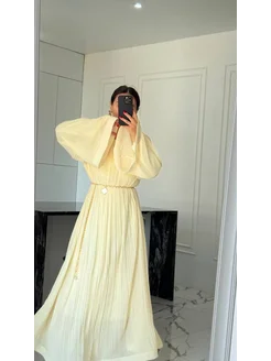 Женское платье вечернее плиссе с подкладом со съемным поясом