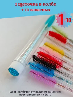 Щеточка для бровей и ресниц в колбе 1 шт +10запасных