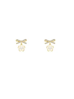 Серьги-гвоздики с жемчугом и цепочкой, золотистые, пусеты