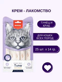 Лакомство для кошек нежное пюре тунец и краб 25 шт